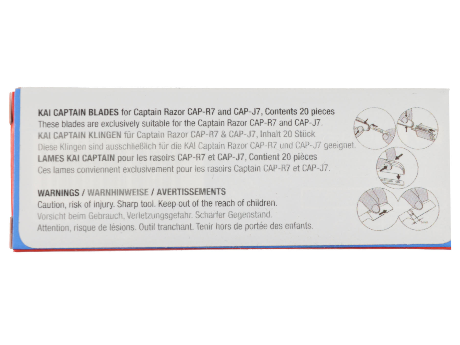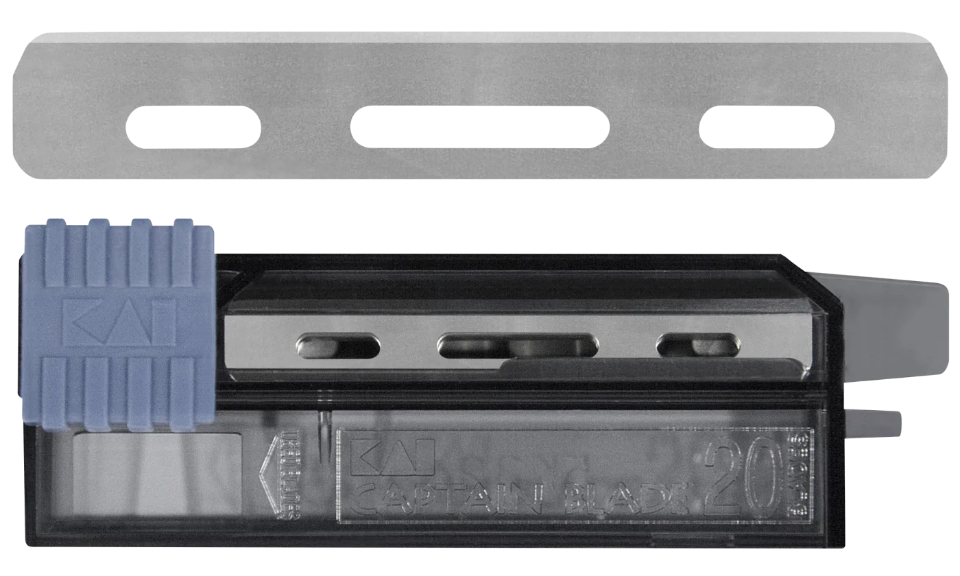 Die CAP-20BL Rasierklingen von Kai Captain Razor mit Klingenspender aus Edelstahl. Inhalt: 20 Stück. Die Klingen passen sowohl zum Captain Razor CAP-J7, als auch zum Captain Razor klappbar CAP-R7.