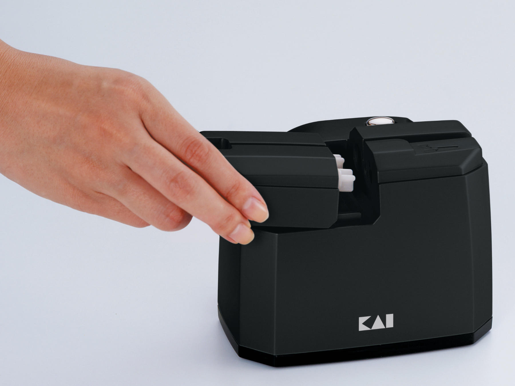 Schönes, kompaktes Produktdesign, ein geringes Gewicht von nur 875 g und die neu entwickelte Schleifeinheit mit zwei keramischen Schleifsteinpaaren sind nur einige Besonderheiten des neuen AP-0118 elektrischen Messerschärfers aus dem Hause KAI. Mit seinen Abmaßen passt er in jede Küche. Das Netzkabel lässt sich im Gehäuse verstauen, eine Abdeckung schützt vor Verschmutzung der Schleifeinheit. Griffmulden und rutschfeste Standfüße sorgen für einen sicheren Halt. Die zwei hintereinander liegenden Schleifsteinpaare ermöglichen zwei Arbeitsschritte zugleich. Das erste Paar, bestehend aus groben Schleifsteinen, bringt die stumpfe Schneide wieder in Form. Das zweite, feine Schleifsteinpaar verpasst der Schneide ein feines und sauberes Finish.