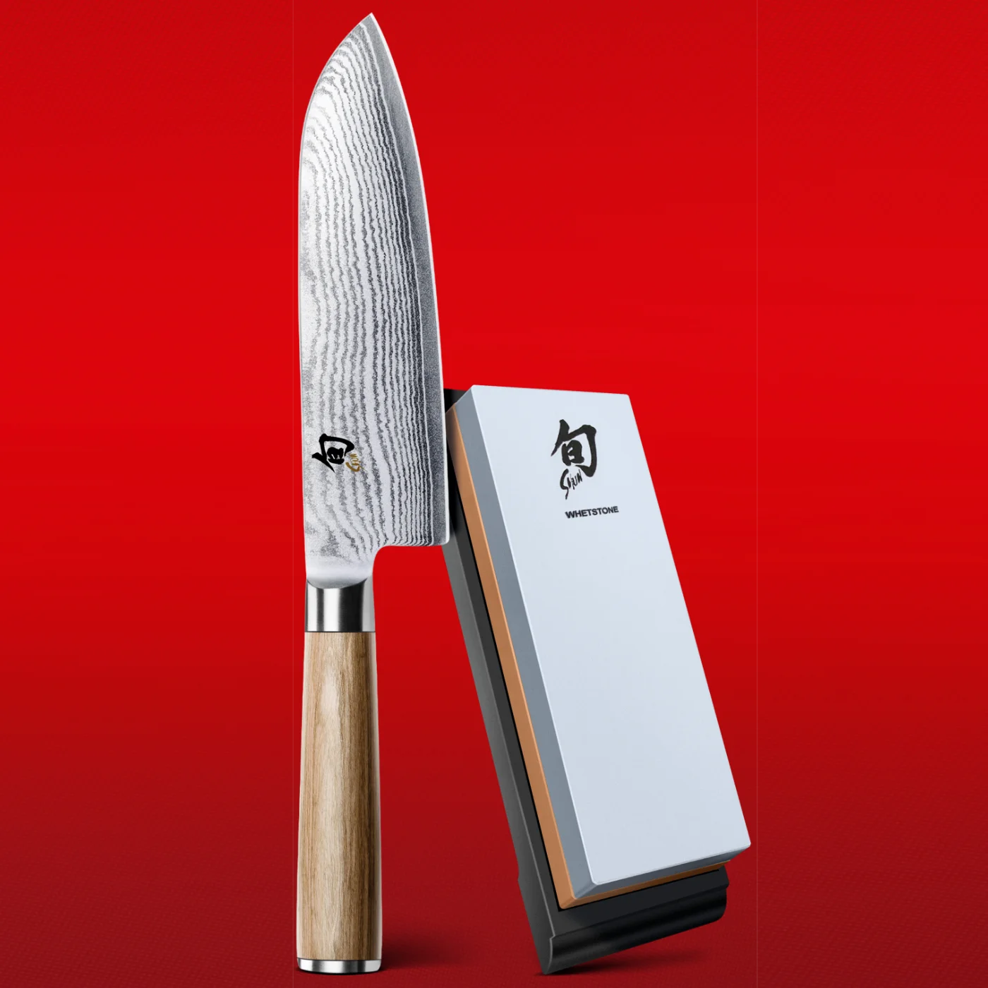 KAI Shun Classic White Santoku + Schleifstein 1000/300