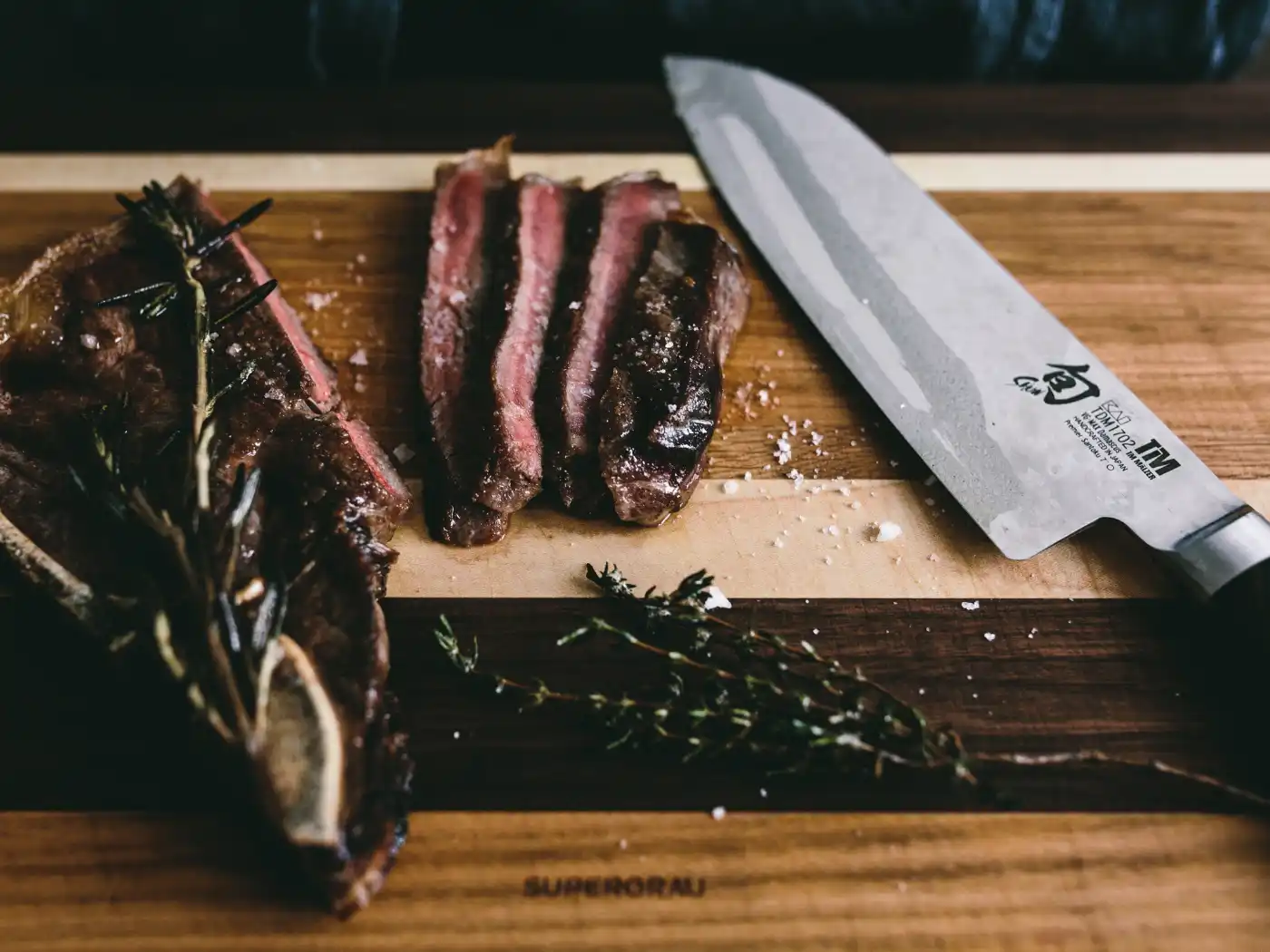 Die Tsuchime-Hammerschlagoberfläche ist nicht nur dekorativ, sondern reduziert durch kleine Luftpolster das Anhaften von Schnittgut an der Klinge. Der symmetrische Griff aus Pakkaholz eignet sich für Links- und Rechtshänder gleichermaßen. Ein durchgehender Erl sorgt für Stabilität und Balance. Als besonderes Detail ziert das Griffende der Serie die Gravur des Tim Mälzer Bullenkopfs – das Markenzeichen des Profi-Kochs.