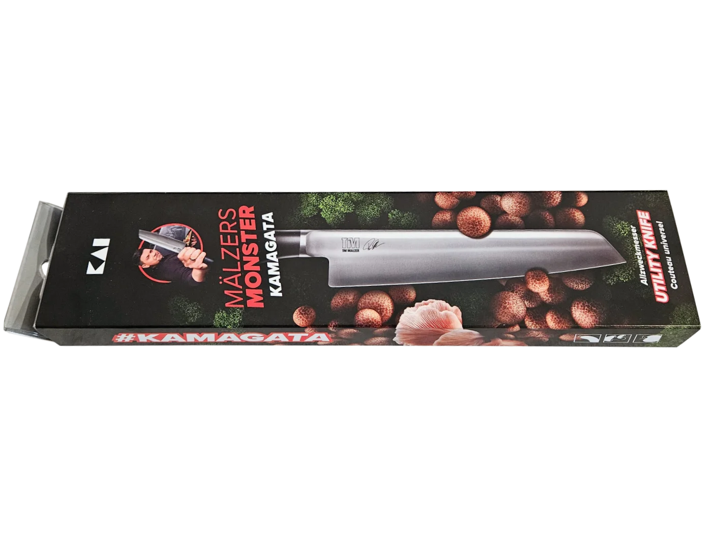 Das KAI Tim Mälzer Kamagata TMK-0701E Allzweckmesser mit 16 cm Klingenlänge ist als Officemesser vielseitig einsetzbar. Die geschmiedete Klinge aus rostfreiem 1.4116 Edelstahl besitzt eine Härte von 56 HRC, eine Stärke von 2,1 mm und eine Höhe von 3,2 cm. Beidseitiger Schliff sorgt für präzise Schneidarbeit bei Gemüse, Obst, Kräutern und kleinen Fleischstücken. Die Geometrie unterstützt kontrollierte, saubere Schnitte im täglichen Einsatz.