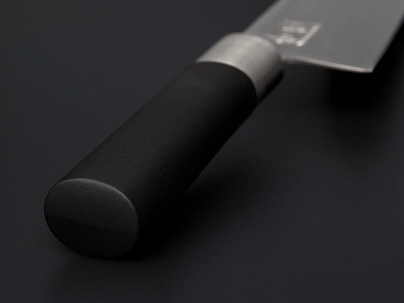 Der mattschwarze Kunststoffgriff ist wasserbeständig, robust und pflegeleicht. Er wird je nach Messergröße in ovaler oder kastanienförmiger Form gefertigt und bietet dank des Zusatzes von Bambuspuder eine angenehm natürliche Haptik. Der Griff umschließt den Erl vollständig, wodurch keine Fugen oder Spalten entstehen, in denen sich Schmutz ablagern könnte – ein klarer Vorteil in puncto Hygiene.