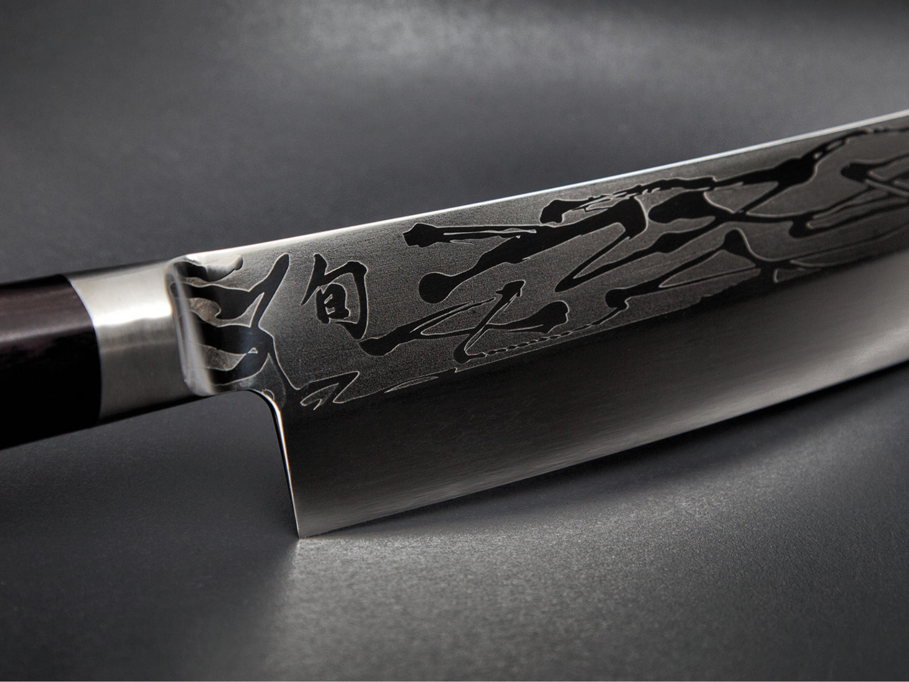 Besonders ins Auge fällt das kunstvolle ornamentale Klingenmuster, das in einem innovativen Verfahren aufgebracht wird und den Messern eine unverwechselbare, elegante Ausstrahlung verleiht. Der schlichte Griff aus schwarzem Pakkaholz steht als ruhiger Kontrast zur aufwendig gestalteten Klinge und unterstreicht den edlen Charakter der Serie. Für dieses außergewöhnliche Zusammenspiel wurde die Shun Pro Sho Serie mit dem German Design Award 2019 – Special Mention ausgezeichnet.